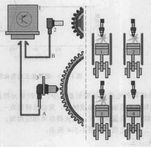 在正常的情况下,发动机工作循环有四个行程,分别是进气、压缩、做功和排气,发动机动力上的表现是先减速后是加速。当发动机存在失火现象时,缺乏做功行程的推动力,此时发动机缺火时的转速波动极大,为了防止失火的现象,发动机电脑ECU使用的是凸轮轴位置传感器来识别缺火的气缸,使用曲轴位置传感器来比较发动机转速的变化,失火检测的原理如下图所示。